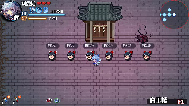 3.香霖堂分店偶然出现在迷宫中的房间,贩卖道具作为中途补给站。一定概率会贩卖一些更好品质的道具,并且其他功能与在镇子上的商店完全一致。
