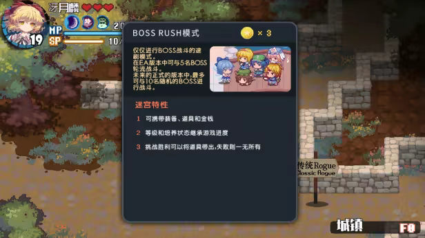 4.BOSS房间每层迷宫尽头,与BOSS作战用的开阔房间。幻想乡的少女将在这里展开华丽的弹幕战,并且获得丰厚的战胜奖励!打起精神全力以赴吧!